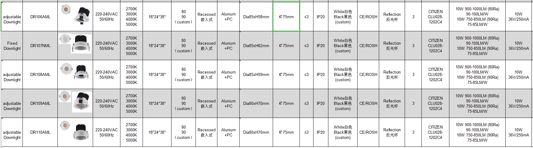 can choose CRI80 CRI90 CRI97 2700K/3000K/3500K/4000K/5000K